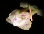Found in the Philippines at elevations of 400 to 700 meters as a small sized, hot to warm growing, erect to semi-pendulous epiphyte with slightly flattened, occasionally branching stems carrying oblong to elliptic, two-ranked, unequally bilobed apically leaves that blooms in the spring on a termional, pendulous, to 3.2" [8 cm] long, successively 1 to 2, many flowered inflorescence with lanceolate, green floral bracts