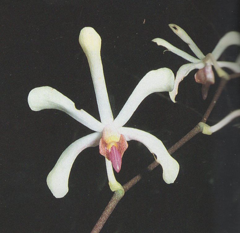 Synonyms Arachnanthe alba Ridl. 1893; Arachnis alba (Ridl.) Schltr. 1911; Arachnis canniformis (Guillaumin) Tang & F.T.Wang 1951; Renanthera alba (Ridl.) Ridl. 1896; *Renanthera hookeriana Rchb.f. 1862; Stauropsis canniformis Guillaumin 1930