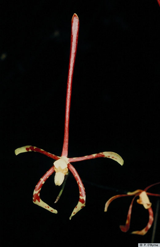 References ; Orchid Digest Vol 46 No 5 1982 drawing/photo fide; Orchid Digest Vol 46 No 5 1982 photo as Arachnis calcarata subsp. longisepala; Rudolf Schlechter Die Orchideen Band 1B lieferung 22 1329 - 1392 Brieger 1989; The Plants of Mount Kinabalu Vol 2 Orchids Wood Beaman & Beaman 1993 as A calcarata; The Plants of Mount Kinabalu Vol 2 Orchids Wood Beaman & Beaman 1993; A Checklist of the Orchids of Borneo Wood & Cribb 1994; The Orchids of Borneo Vol 3 Wood 1997 drawing/photo fide; Malesian Orhcid Journal Vol 2 2008 photo ok; The Orchids of Mount Kinabalu Vol 1 Wood, Beaman, Lamb, Chu Lun and Beaman 2011 drawing/photo fide; The Orchids of Mount Kinabalu Vol 2 Wood, Beaman, Lamb, Chu Lun and Beaman 2011; A to Z of South East Asian Orchid Species Vol 2 O'Byrne 2011 drawing/photo fide