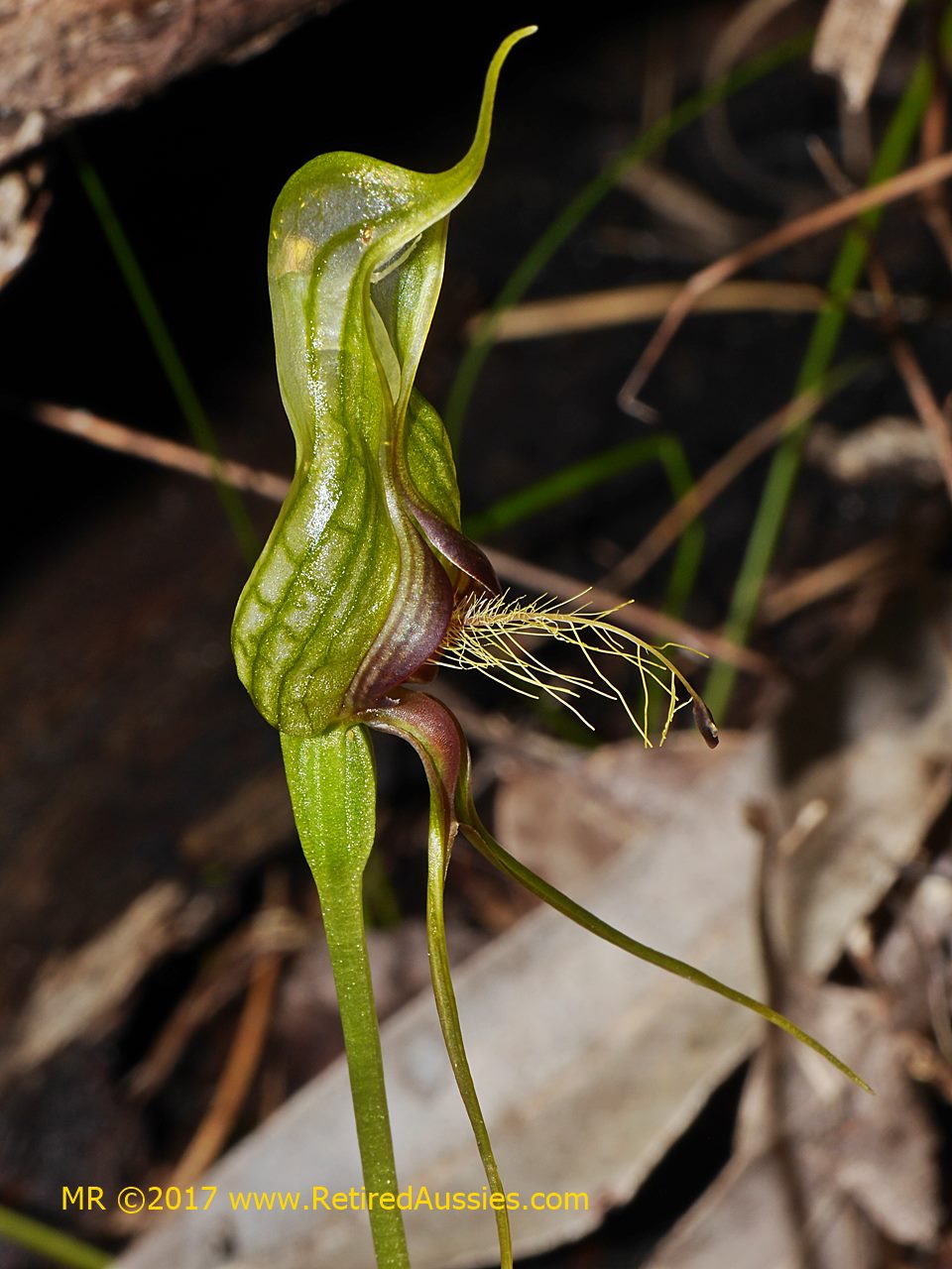 Found in western Papua New Guinea in wet flats in lowland savannah forest as a warm growing terrestrial with oblongto ellipsoid tubers, leaves not seen that blooms in the early summer on an erect, glabrous, subterraneoan part .4 to .92" [1 to 2.3 cm] long, above the ground 4.2 to 7" [10.5 to 17.6 cm] long, peduncle 3 to 5.2" [7.5 to 13 cm] long, provided with 2 to 3 sheathing bracts, rachis 1.28 to 3.4" [3.2 to 8.8 cm] long, laxly 4 to 7 flowered inflorescence with ovate-lanceolate floral bracts and carrying non-resupinate, green flowers with the callus of the lip darkreddish