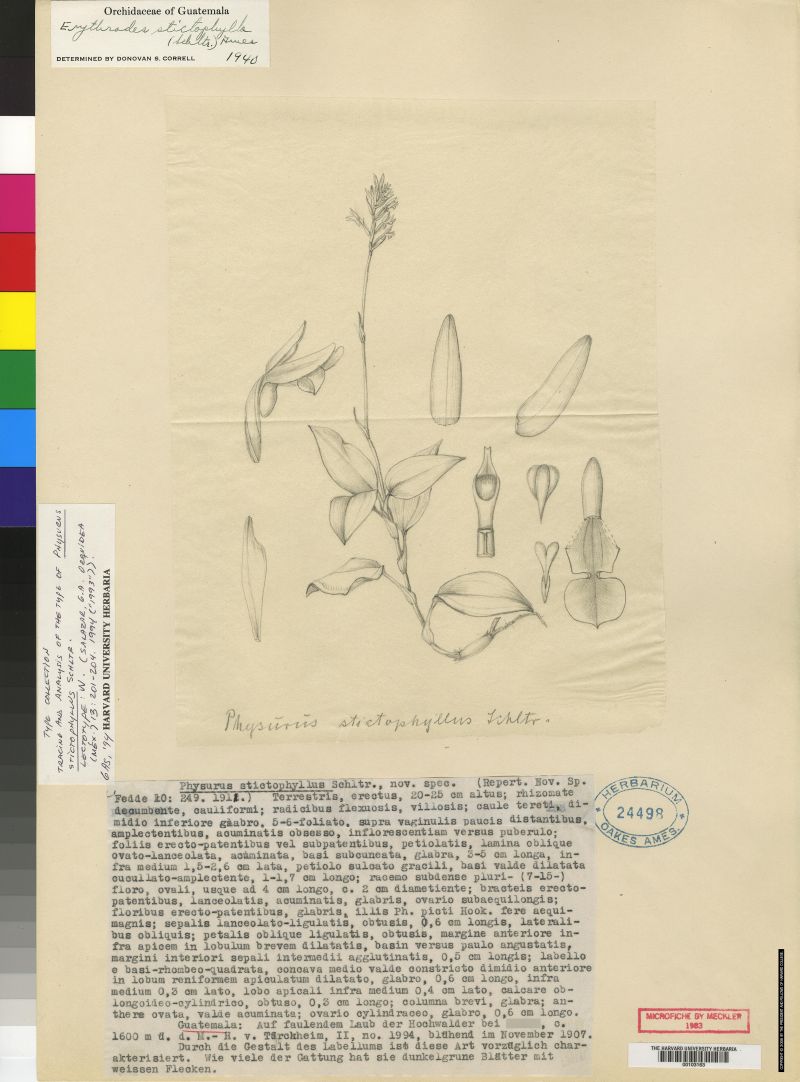 Synonyms Erythrodes stictophylla (Schltr.) Ames 1922; *Physurus stictophyllus Schltr. 1911