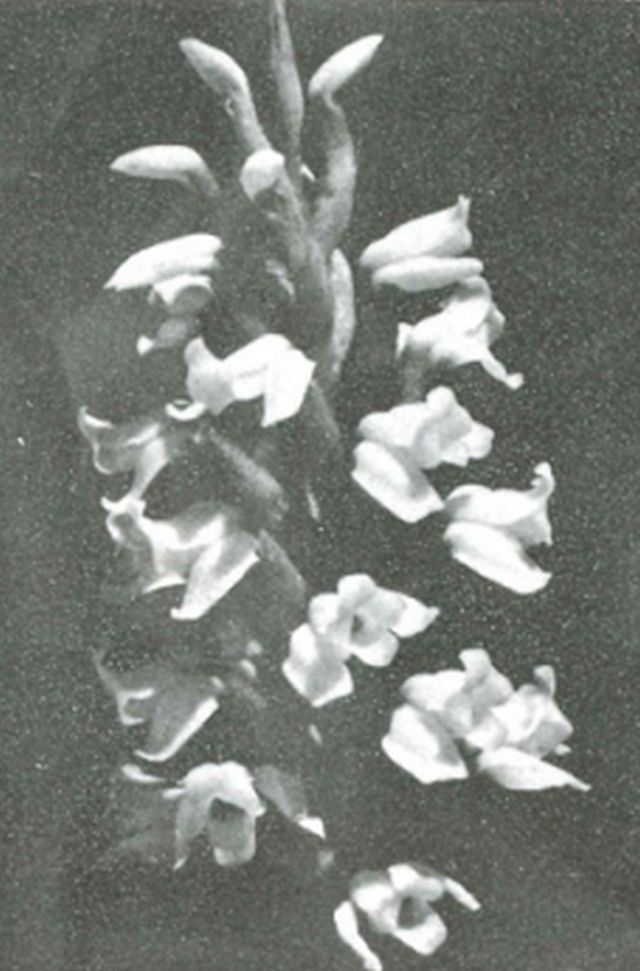 Found in Michoacan and Oaxaca states of Mexico and Guatemala on wet rocks and crags at elevations of 250 to 1390 meters as a medium sized, hot to cool growing lithophyte with an erect stem enveloped by many, hyaline, acuminate, arcuate, twisted, inflated bracts, without leaves that wither just before blooming, that blooms in the fall, winter and spring on a terminal, erect, dense, rachis 3.6 to 7.2" [9 to 18 cm] long, subsecund, many flowered inflorescence with elliptic-lanceolate, acuminate, erect-clasping, as long as the ovary floral bracts and carrying somewhat large sized for the genus flowers. Mexico