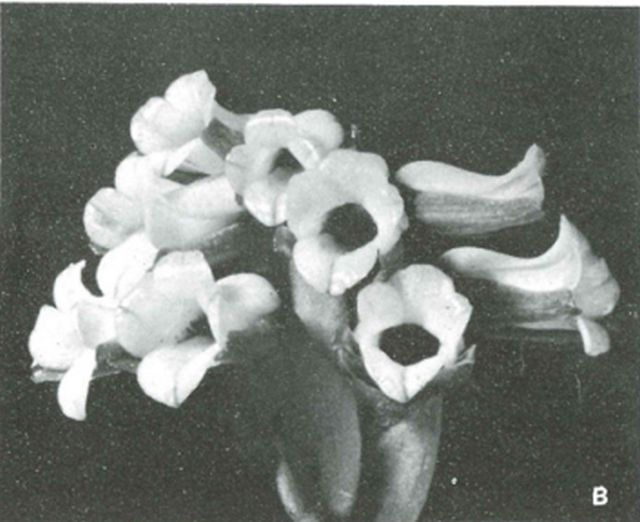 Found in Oaxaca state of Mexico and Guatemala in pine/oak woods in rocky soils at elevations around 1630 meters as a large sized, cool growing terrrestrial with linear-oblong to lanceolate, present at blooming, bassal, petiolate base leaves that blooms on a terminal, erect, pubescent towards the apex, peduncle covered with scarious bracts, congested, sub-capitate, 9 to 10 flowered inflorescence with membraneous, broadly ovate, shortly rostrate, 3 nerved, enveloped some of the ovary floral bracts