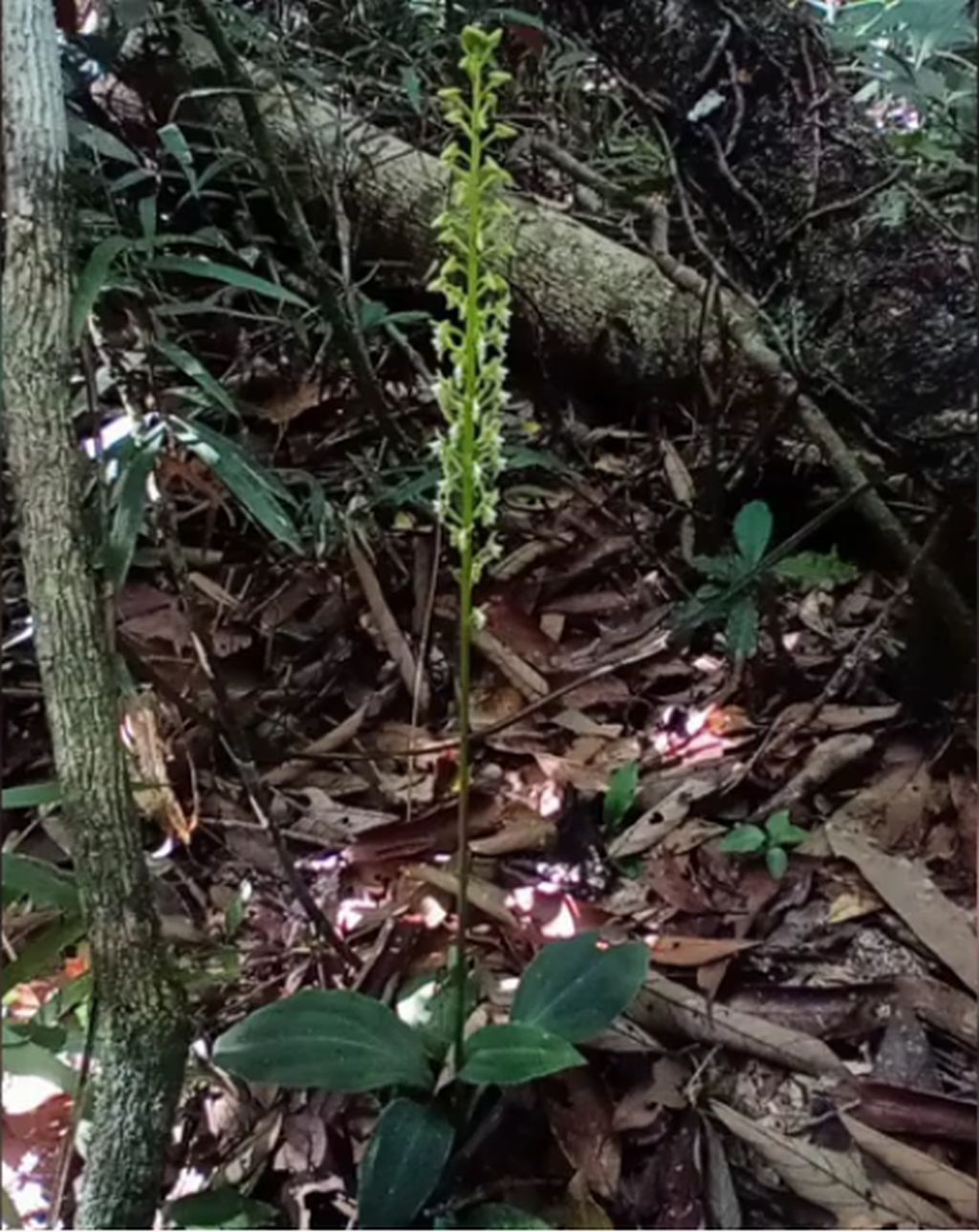 Found in Rio de Janiero, Sao Paulo, Parana, Rio Grande do Sul and Santa Catarina states of Brazil as a medium sized, warm to cool growing terrestrial with 4 to 6, basal, oblong-lanceolate, attenuate below into the petiolate base leaves that blooms in the fall on a terminal, erect, 6 to 10" [15 to 25 cm] long, laxly multiflowered inflorescence with ovate-lanceolate, much longer than the ovary below becoming shorter than above floral bracts.
