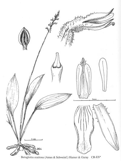 Beloglottis ecallosa (Ames & C.Schweinf.) Hamer & Garay 1981 Drawing by © Hamer