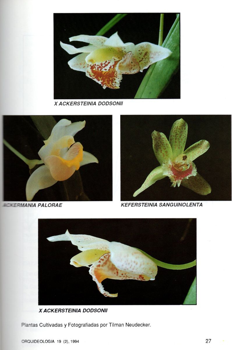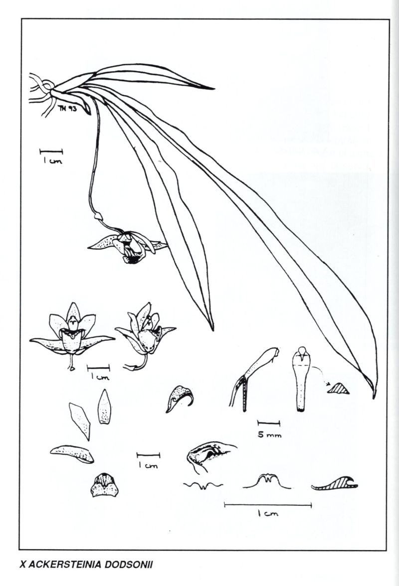 References W3 Tropicos, Kew Monocot list , IPNI ; *Orquideología Vol 19 #2 pg 26 Ortiz 1994 as X Ackersteinia dodsonii drawing/photo fide;