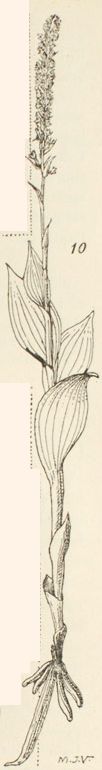 Found in southeastern Madagascar at elevations of 1200 to 2000 meters as a medium to large sized , cool growing terretrial with numerous fusiform tubers giving rise to a thick stem with 2 to 3 very loose, in the lower half sheaths the upper 2 blackish externally, then above carrying 2 to 3, very thick, widely oval-lanceolate, acuminate-acute leaves grading above into the bracts above that blooms in the later spring on an erect, rachis eplongate, 6 to 7.2" [15 to 18 cm] long, cylindrical, densely many flowered inflorescence with narrowly lanceolate, acuminate-acute, single veined, slightly longer than the flowers floral bracts and carrying greenish-yellow, thick, short flowers.