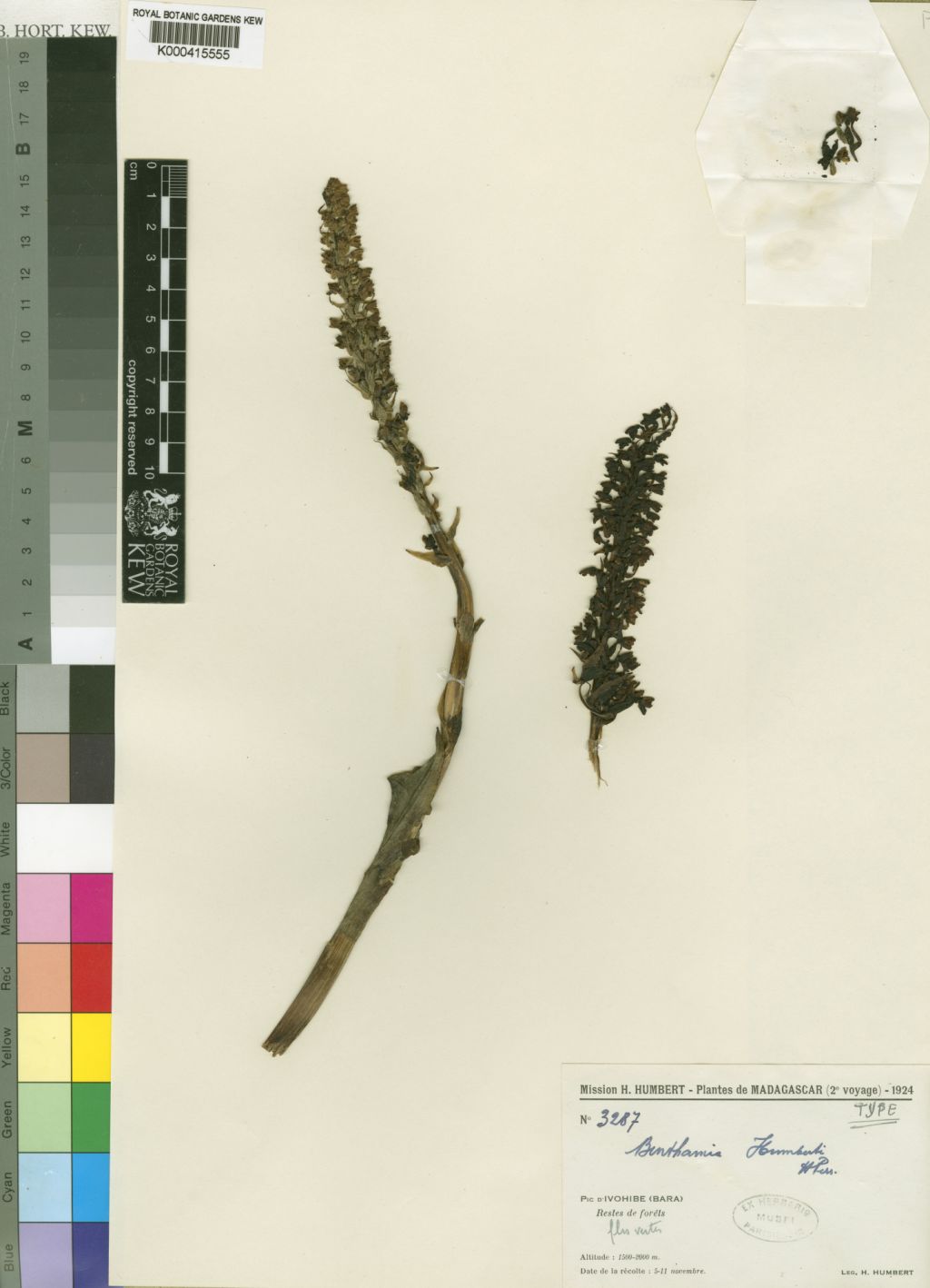 References W3 Tropicos, Kew Monocot list , IPNI ; Flora of Madagascar Perrier 1939/81 drawing fide; Les Orchidees de Madagascar Bosser & Lecoufle 2015 photo fide; A la Recherche des Orchidees de Madagascar Hervouet 2018;