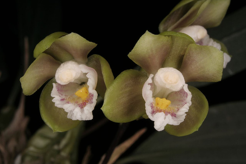 Found in Rio de Janiero and Espirito Santo states of Brazil in montane rainforests at elevations of 800 to 1000 meters as a miniature sized, warm to cool growing epiphyte with conical-tetragon, slightly compressed pseudobulbs carrying a single, plicate, oblanceolate, acuminate leaf that blooms in the spring on a basal, 2.4" [6 cm] long, rigid, 2 to 3 flowered inflorescence enveloped by amplexicaul bracts and obovate-lanceolate, acuminate floral bracts and carries fragrant flowers.