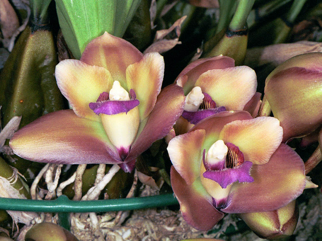 Found in Bahia, Espirito Santo and Minas Gerais States of Brazil at elevations of 1000 to 2000 meters, in an area with a distinct winter dry season as a cool growing epiphyte or lithophyte with broadly ovoid-pyriform, angled, deeply sulcate pseudobulbs carrying a single, apical, elliptic-oblong, suberect, subacute or obtuse, thin-textured, plicate leaf that blooms in the spring and early summer on a basal, racemose, 4" [7.5 cm] long, erect, rigid inflorescence with 1 to 4, fragrant, fleshy, long-lasting flowers arising on a mature pseudobulb.