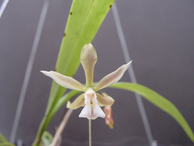 Found only in Rio de Janiero and Sao Paulo states of Brazil as a miniature to small sized, warm to cool growing epiphyte and rarely lithophyte with ovoid, compressed pseudobulbs partially enveloped basally by short, leafless sheaths and carrying 2, lanceolate-ligulate, acute, rather leathery, leaves and blooms in the summer on an axillary, gracefully arching, often branched, to 18" [to 45 cm] long, rather loosely 6 to 13 flowered inflorescence.