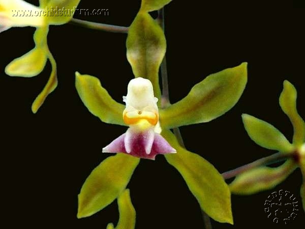 Found in Rio de Janiero state of Brazil in the Atlantic rainforest at elevations around 1500 meters as a miniature sized, warm to cool growing epiphyte with oblong, laterally compressed pseudobulbs with persistent leaf-bearing sheaths and carrying 2, apical, green, herbaceous, lanceolate, slightly recurved, acute, attenuate basally leaves that blooms in the spring on a racemose, basal, thin, to 8" [20 cm] long, many flowered inflorescence carrying simultaneously opening flowers.