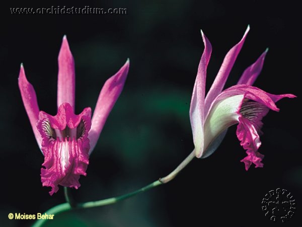 Found in Mexico, Guatemala, Costa Rica and Panama on rocky or grassy hillsides in oak or oak-pine forests at elevations of 1200 to 2500 meters as a small sized, cool to cold growing terrestrial with small pseudobulbs carrying 2, apical, plicate, folded, narrowly to broadly lanceolate, long, acuminate leaves that blooms in the fall and winter on a basal, 3 1/2' [105 cm] long, 2 to 12 flowered, racemose inflorescence carrying long-lived flowers