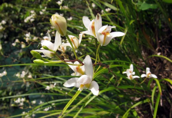 This amazing orchid lives on riverbanks where the plants survive submerged for most of the year in the streams then in late winter the water levels recede and this orchid puts out a new lead and by April it is in flower and by early May the flowers have encapsulated and the capsules matured and the seed starts to fly. By late May the plant is again submerged for another year.