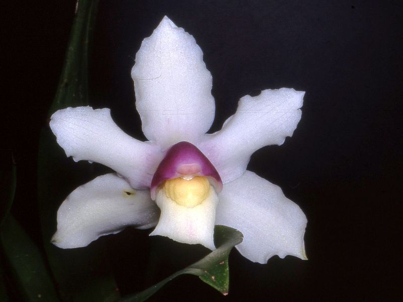 Found in Colombia, Ecuador and Peru in wet montane forests at sealevel to 1500 meters as a medium sized, hot to cool growing epiphyte with a fan of plicate, obovate, acute to obtuse, becoming conduplicate towards the base leaves that blooms in the summer on a shorter than the leaves, ascending, sheathed stalk carrying a solitary flower.