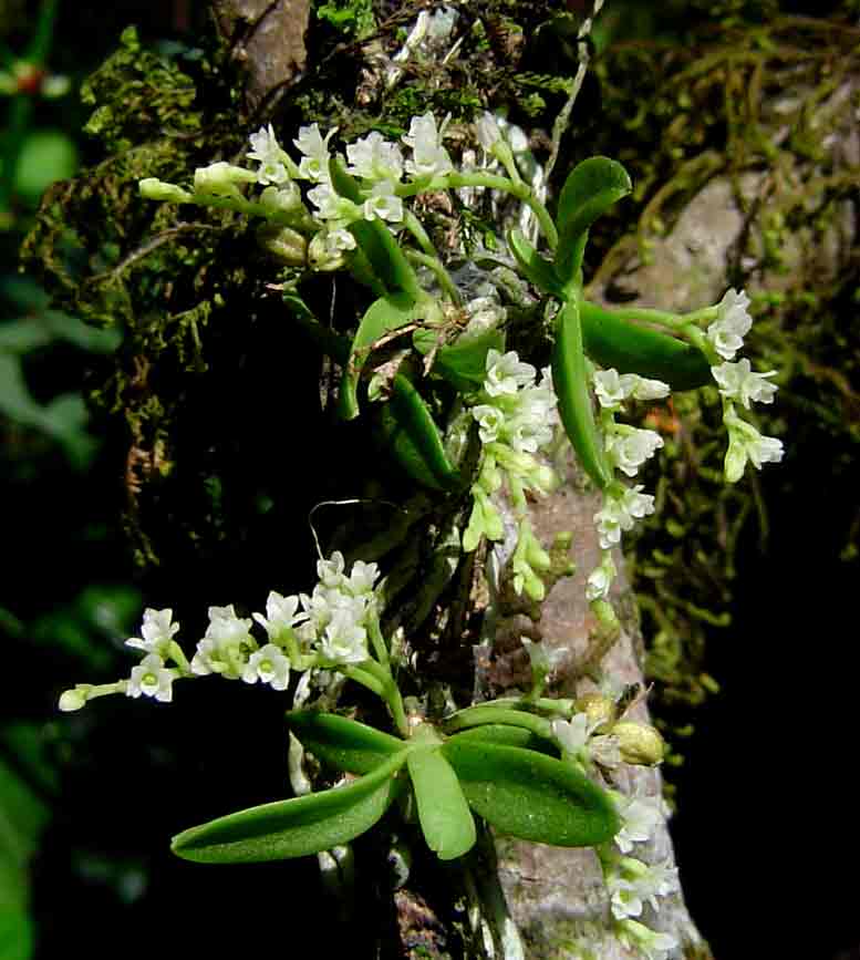 Found in Zimbabwe, Swaziland and Transvaal, Natal and Cape Province South Africa in shade amongst boulders at elevations of 1200 to 1500 meters as a slender, small to medium sized, cool to cold growing terrestrial with an erect, leafy stem carrying 10 to 12, linear-lanceolate, acute, slightly falcate leaves that are partially withered at blooming which occurs in the late winter and spring on an erect, 2 to 8" [5 to 20 cm] long, several to many flowered inflorescence with ovate, acuminate floral bracts.