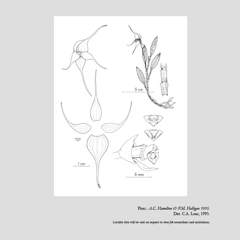 References W3 Tropicos, Kew Monocot list , IPNI ; *Icones Pleurothallidinarum Vol XII Luer 1995 drawing fide; AOS Bulletin Vol 76 No 12 2007