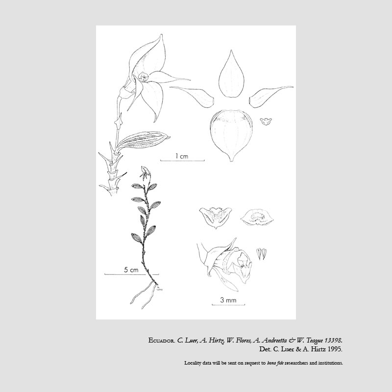 References W3 Tropicos, Kew Monocot list , IPNI ; *Icones Pleurothallidinarum Vol XII Luer 1995 drawing fide; Flora Of Ecuador # 76 225[2] Dodson & Luer 2005 drawing fide; Orchids of Peru Zelenko & Bermudez 2009 photo not = B elegans;