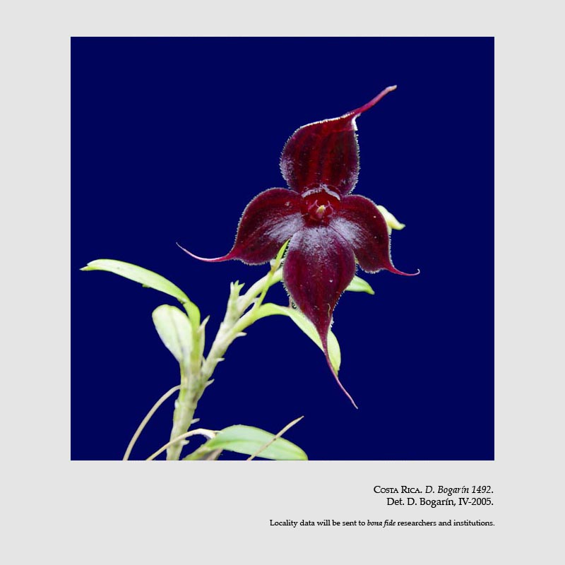 References W3 Tropicos, Kew Monocot list , IPNI ; Lankester's Epidendra Website CR ; *Icones Pleurothallidianrum Vol XII Luer 1995 drawing fide; Manual De Plantas de Costa Rica Volumen III Hammel, Grayum, Herrera and Zamora 2003; Vanishing Beauty, Native Costa Rican Orchids Vol 1 Pupulin 2005 photo fide;