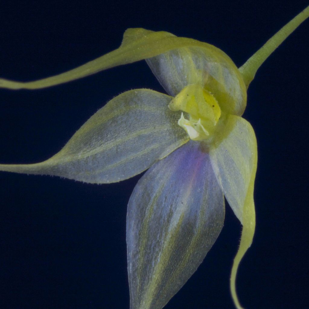 Found in Costa Rica at elevations of 1300 to 2100 meters as a miniature sized, cool to cold growing terrestrial with an erect to suberect, relatively stout rhizome enveloped completely by 3 to 5, mucronate, infundibuliform, papyraceous sheaths, giving rise at intervals, perpendicular to the rhizome, stout ramicauls enveloped by 2 mucronate sheaths and carrying a single, apical, erect, subcoriaceous, elliptical, acute, smooth, flat, conduplicate below into the petiolate base leaf that blooms in the later summer on a slender, erect to suberect peduncel, to 1" [2.5 cm] long overall, single flowered inflorescence with an inflated, acute, mucronate floral bract