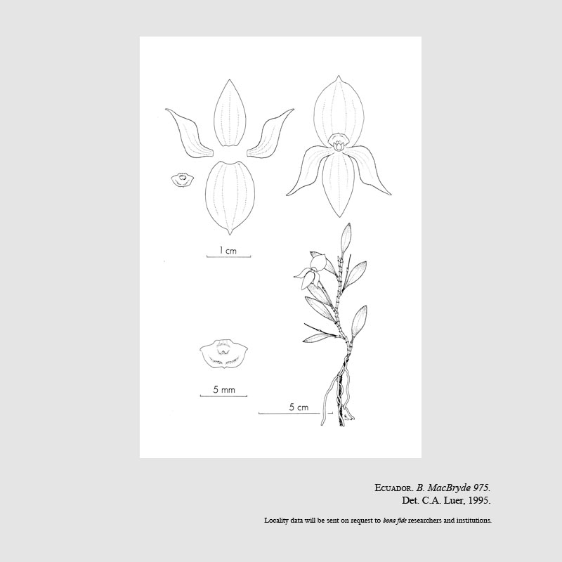 References W3 Tropicos, Kew Monocot list , IPNI ; Native Ecuadorian Orchids Vol 1 1994 Dodson drawing fide; *Icones Pleurothallidinarum Vol XII Luer 1995 drawing fide; Flora Of Ecuador # 76 225[2] Dodson & Luer 2005;