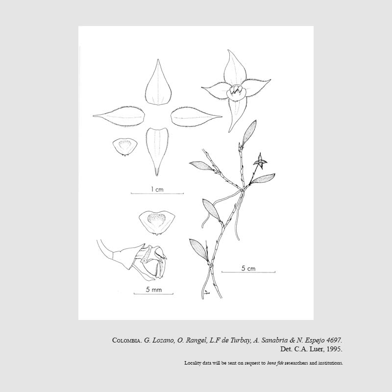 References W3 Tropicos, Kew Monocot list , IPNI ; Icones Pleurothallidinarum Vol XII Luer 1995 drawing fide; Orchids, A Colombian Treasure Vol 1 Ortiz & Uribe 2014 drawing fide