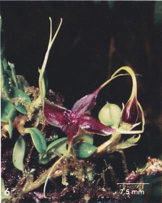 Found in Oxapampa Province of Peru in primary forests at elevations around 2500 meters as a mini-miniature sized, cold growing epiphyte with a repent rhizome giving rise to ereft, short ramicauls enveloped by 2 sheaths and carrying a single, apical, erect, coriaceous, ovate, acuminate, abreuptly narrowing below into the petiolate base leaf that blooms on an erect, short, single flowered inflorescence