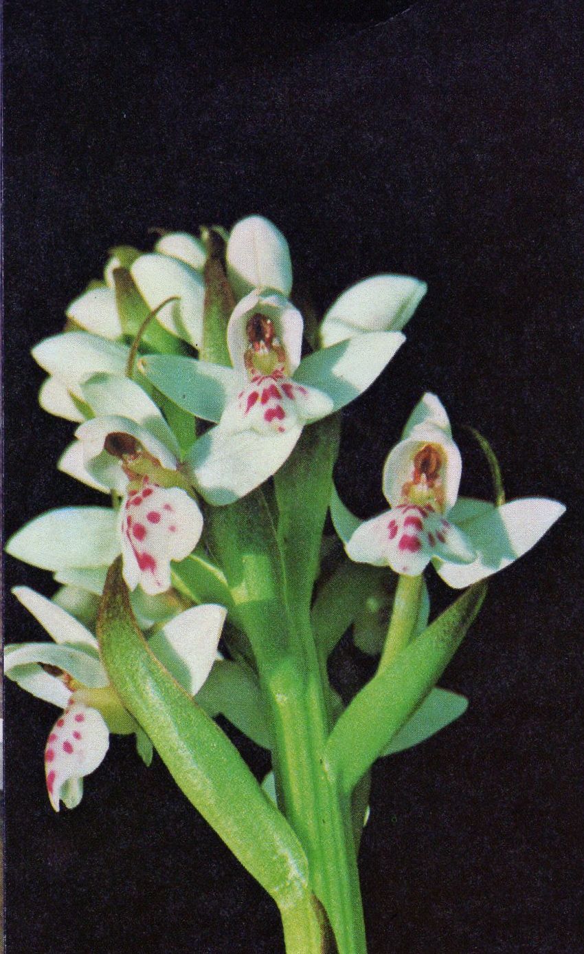 Found in Zaire, Angola, Zambia and Tanzania in open perennially wet boggy grasslands at elevations around 1400 to 1500 meters as a medium sized, cool growing terrestrial with thick, cylindrical tubers giving rise to an erect stem carrying several loosely arranged leaves that blooms in the spring through early summer on an erect, very dense, short, several to many flowered inflorescence carrying resupinate white to mauve to purple colored flowers with darker spots on the lip.