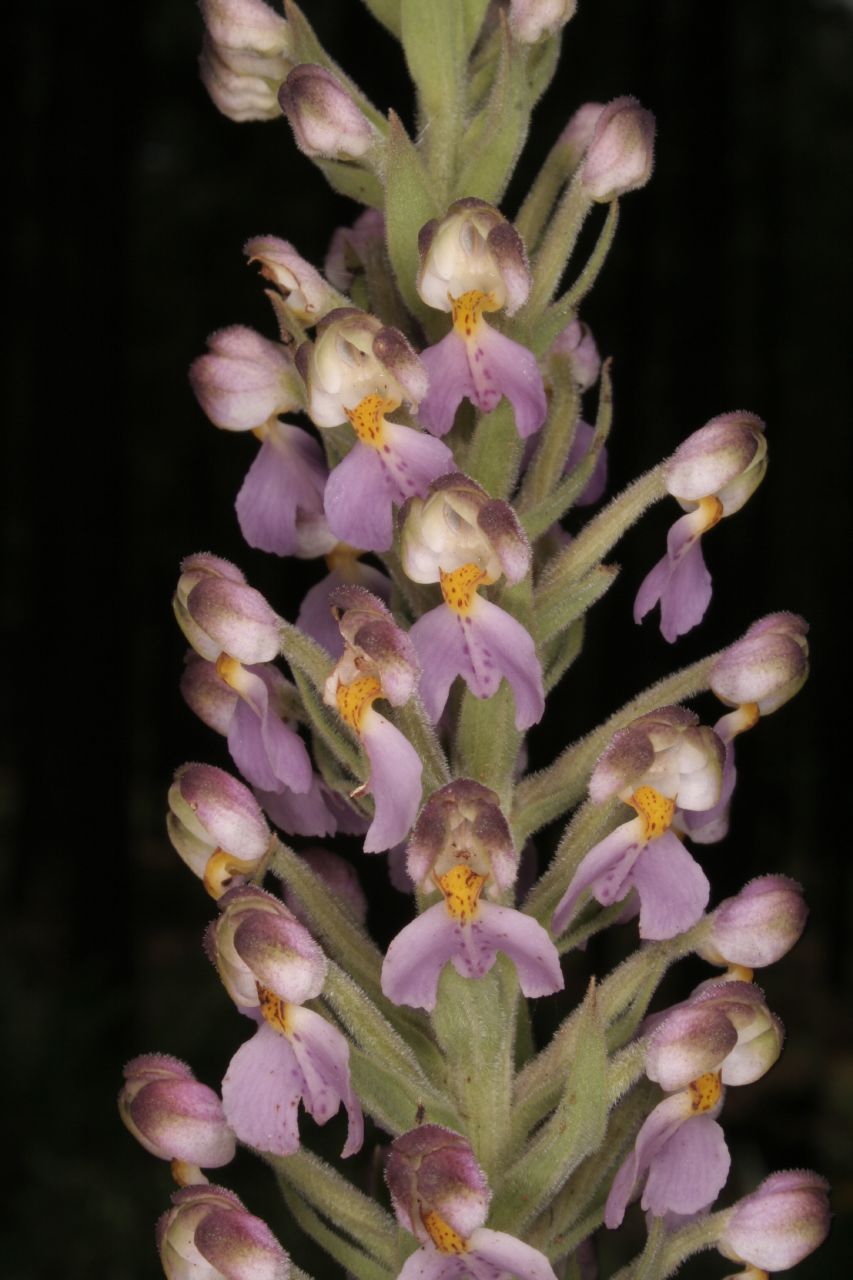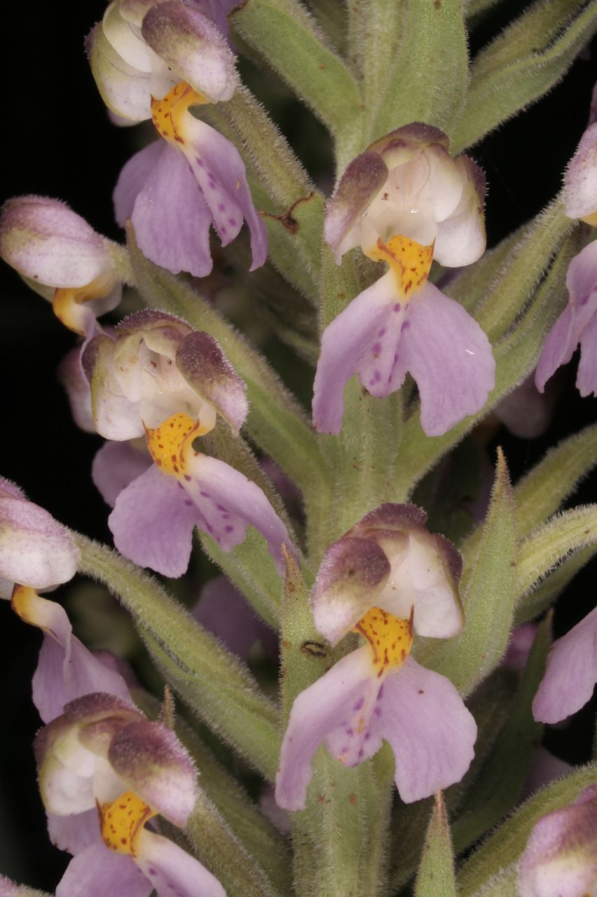 Found in Burkino Faso, Guinea, Ivory Coast, Mali, Nigeria, Togo, Burundi, Central African Republic, Congo, Gabon, Rwanda, Zaire, Ethiopia, Sudan, Kenya, Tanzania, Uganda, Angola, Malawi, Mozambique, Zambia, Swaziland, Natal and Transvaal South Africa in grasslands and open woodlands at elevations of sealevel to 2700 meters as a small to large sized, cool to cold growing terrestrial with ellipsoid tubers giving rise to a stem carrying numerous, lanceolate, acuminate, densely velvety hairy leaves that blooms in the spring and early summer on a terminal, erect, densely many fowered, to 14" [to 35 cm] long, racemose inflorescence with bracts similar to the leaves and carrying pubescent, sweet soapy scented flowers.