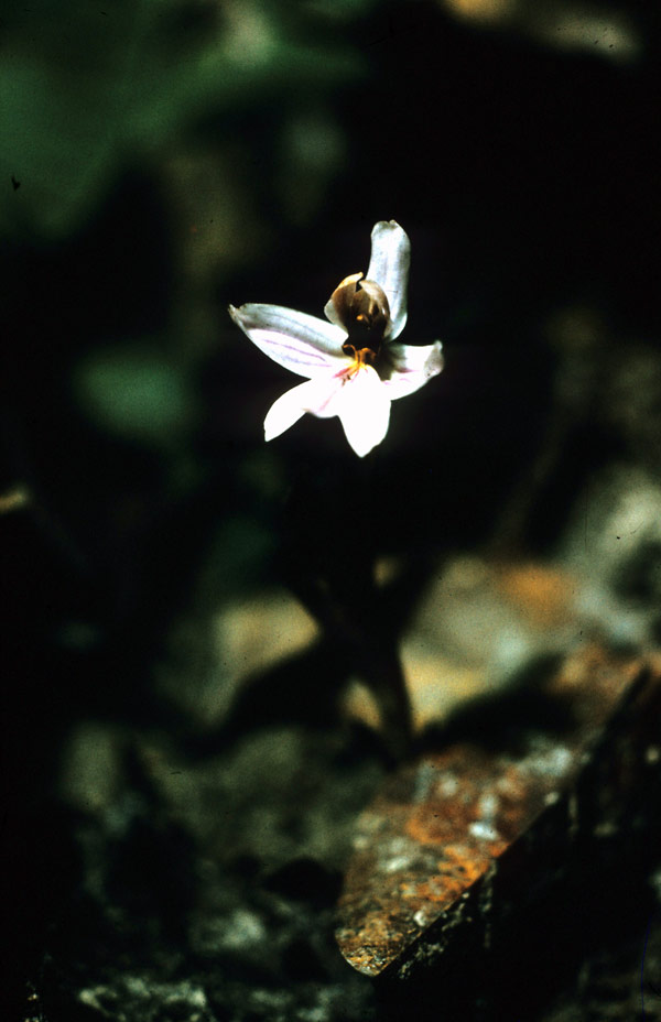 Found in Sierra Leone, Togo, Ivory Coast, Liberia, Nigeria and Guinea in primary forests at elevations below 300 meters as a miniature sized, hot growing leafless terresrial with large tuberous roots giving rise to an erect, glabrous stem enveloped completely by membraneous, acute, sheaths that blooms in the winter carrying 1 to 3, apical flowers with acute, as long as the ovary floral bracts.