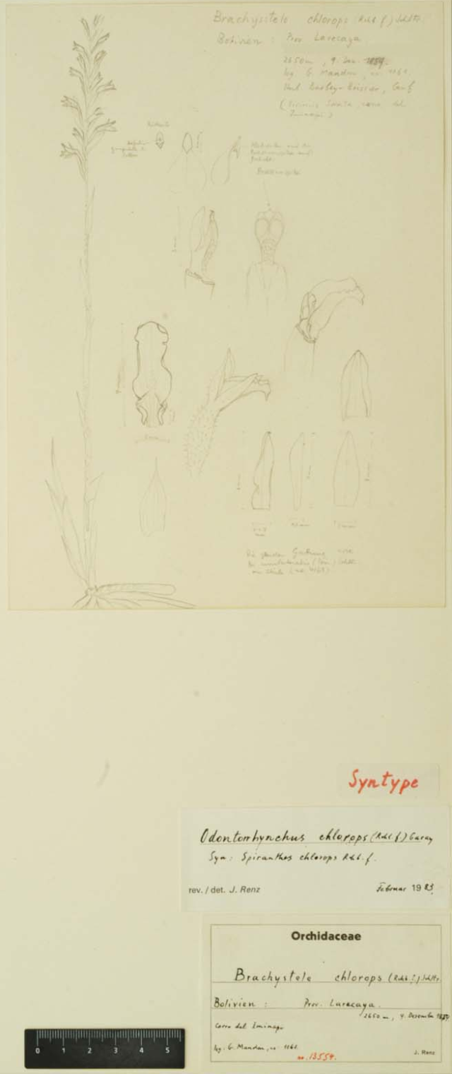 Brachystele chlorops (Rchb.f.) Schltr.1920 drawing by © Jany Renz and The Swiss Orchid Foundation at the Jany Renz Herbarium