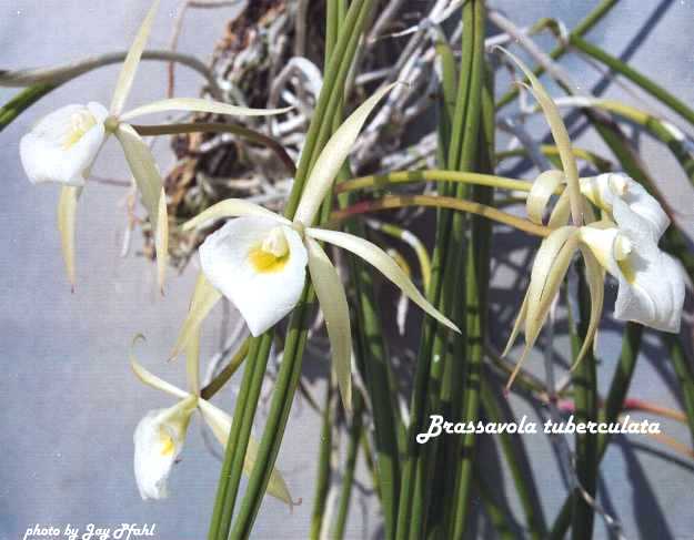 Synonyms Bletia tuberculata [Hkr.]Rchbf 1861; Brassavola fragrans Lemaire 1853; Brassavola gibbsiana Wms. 1877; Brassavola trinervis Lindley 1831; Brassavola tuberculata Barb. Rodr. 1882; Tulexis bicolor Raf. 1836