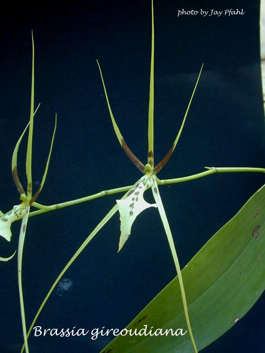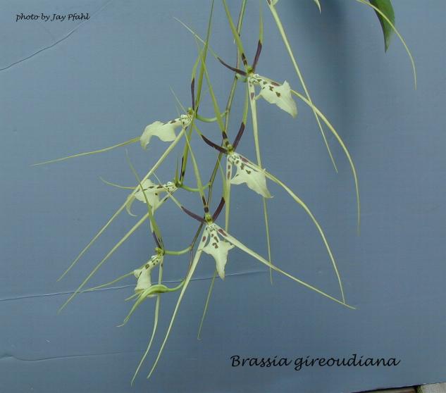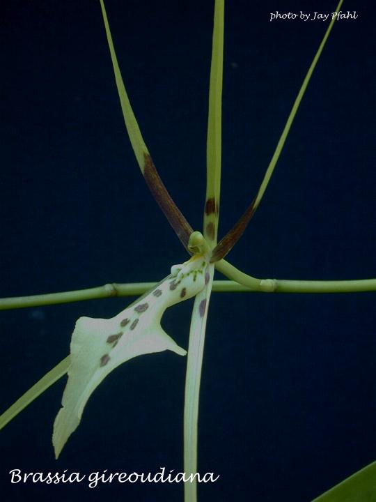 Synonyms Brassia verrucosa subsp. gireoudiana (Rchb.f. & Warsz.) Dressler & N.H.Williams 2003; Oncidium gireoudianum (Rchb. f. & Warsz.) Rchb. f. 1863
