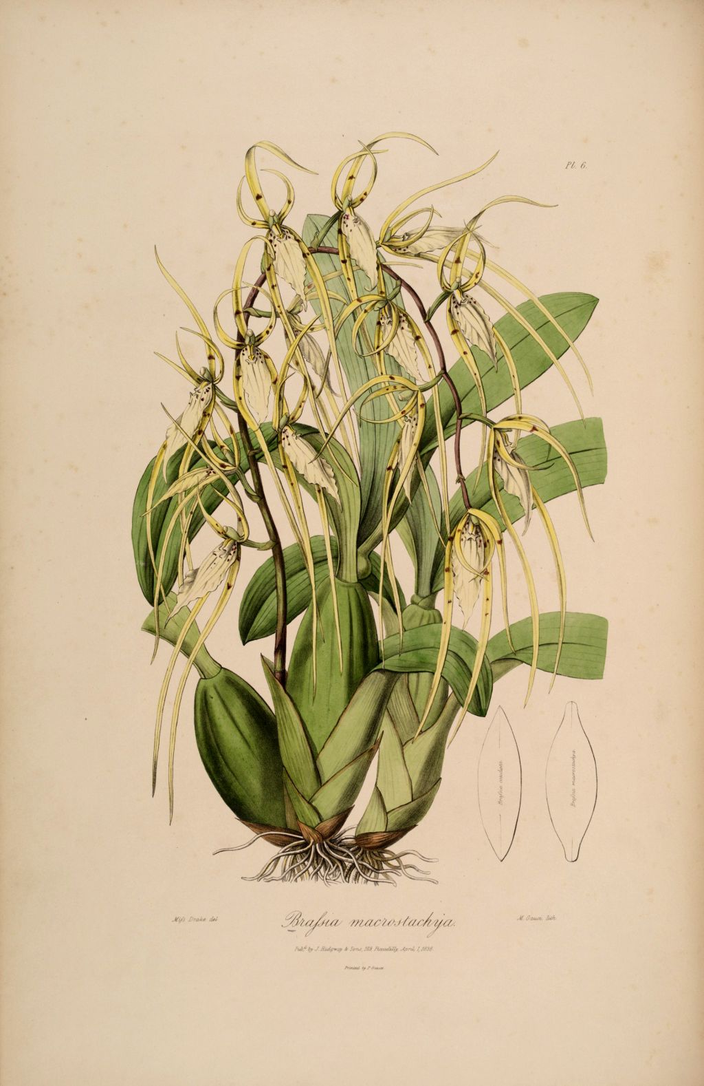 Brassia macrostachya Lindl. 1838TYPE drawing by © Miss Drake Sertum Orchidaceum, pl. 6
