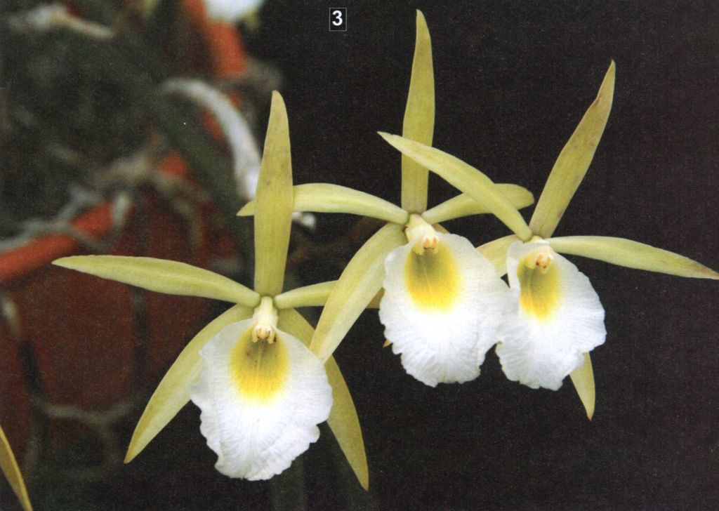 Found in Minas Gerais state of Brazil in rocky mountainous regions at elevations around 1100 meters as a miniature sized, cool growing saxicolus terrestrial with smooth, cylindrical, 5 to 6 articulated pseudobulbs enveloped basally by membraneous scarious, evanescent sheaths and carrying a single, apical, fleshy, rigid, curved, terete, ridged lenghtwise, acute leaves that blooms in the fall on a terminal, racemose, arched, shorter than the leaves, 2" [5 cm] long, usually 3 flowered inflorescence.