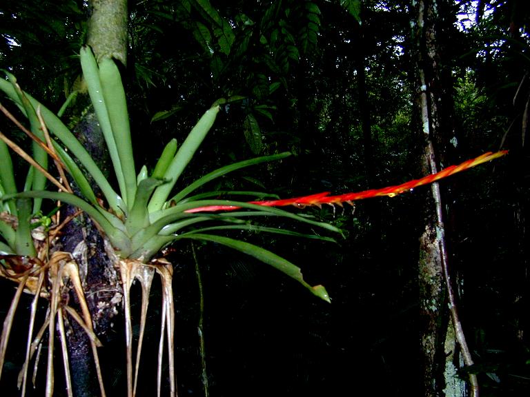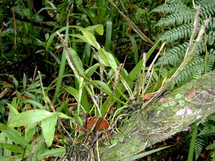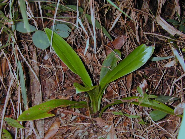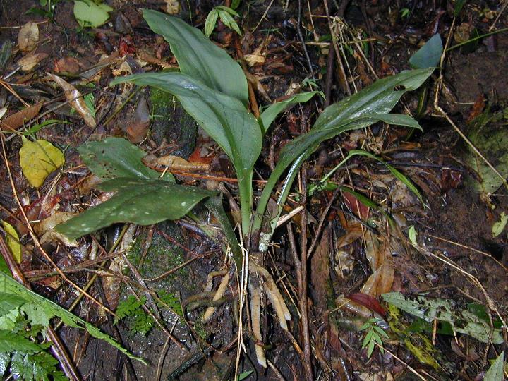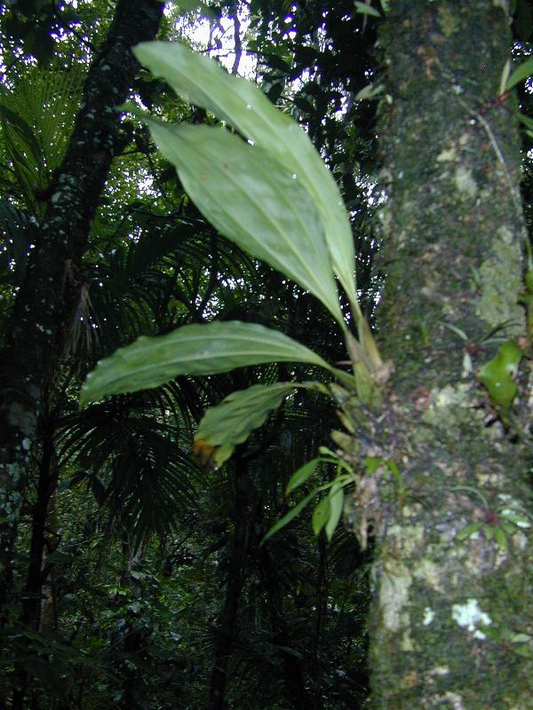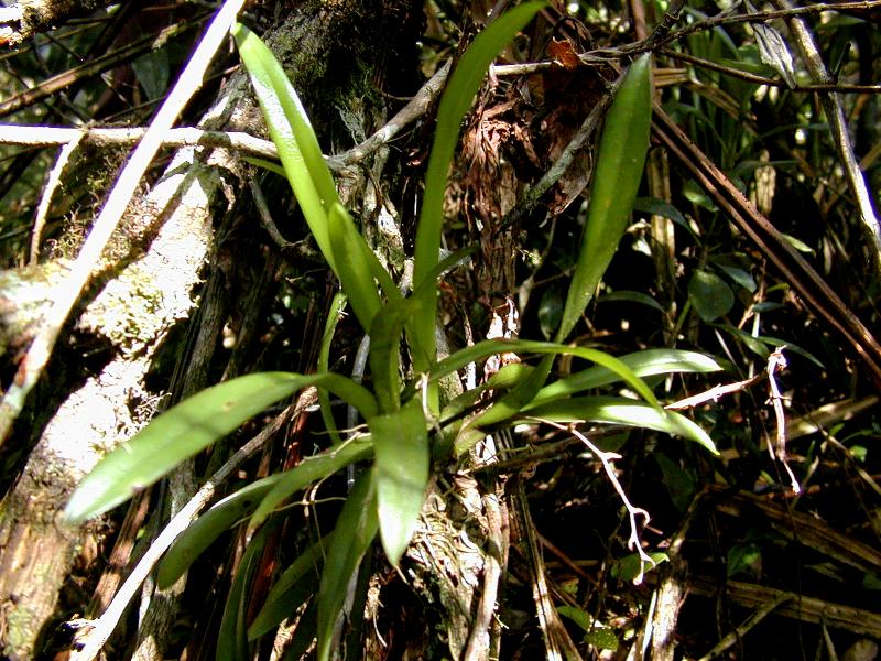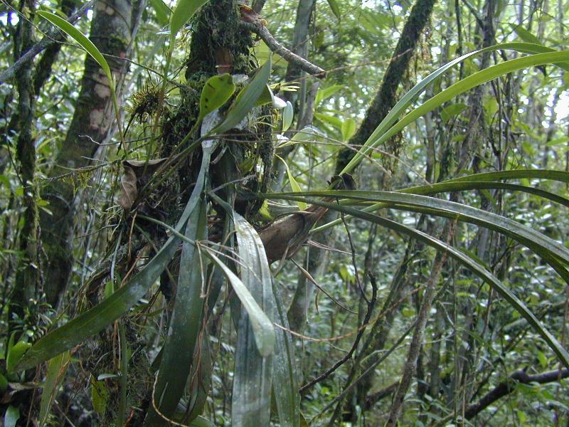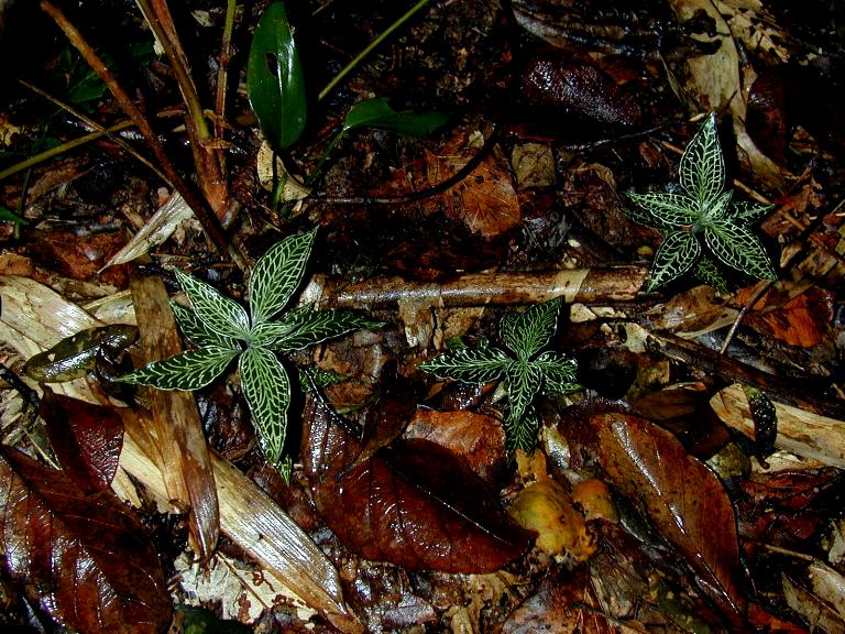 There were also many different Bromeliads in this area. The jungle here was very thick and very little light entered from outside. As we walked we had to move very slowly so that we would see what orchids were around. Here is Aspidogyne argentea, a very pretty terrestrial orchid that I almost stepped on. Our first and only blooming orchid in this area was Encyclia patens. The afternoon was waning and even in the bright of day it was hard to see in this dense rainforest so we trudged back to Marcos' sister's House and had dinner with Dalton, Marcos, Americo, Keller and myself.