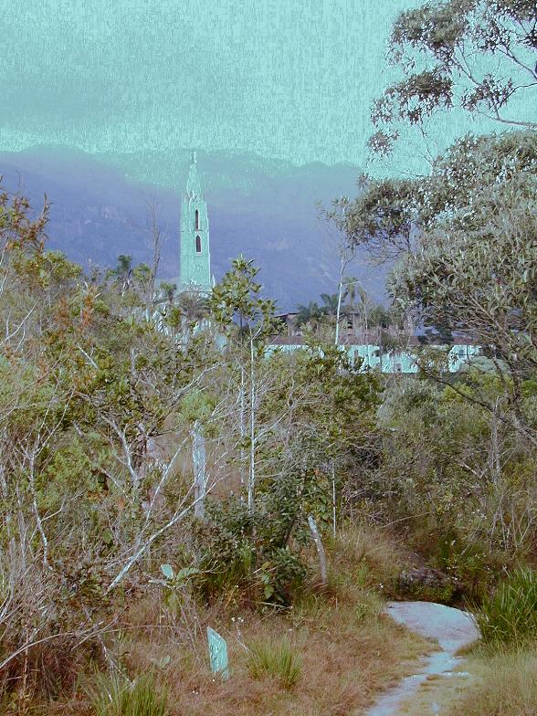 We both did a lot of climbing for old guys. Here is a Bulbophyllum warmingianum hotel. Marcos is standing at the edge of the chasm that has the waterfall below. On our way back towards the monastery we found a plant of Sauroglossum nitidum and Prescottia stachyoides which had two inflorescence arising. After a couple of hours climbing back up the canyon we could see the monastery ahead. The chapel was built in 1775. Each night the same monk calls the Guara' and they come in to eat a scrap of meat. We both hit the beds and feel fast asleep knowing that tomorrow would bring a 20 mile climb up to the top of the Pico do Carapusa elevation 1995 meters and we were sleeping at 1100 meters.