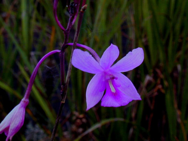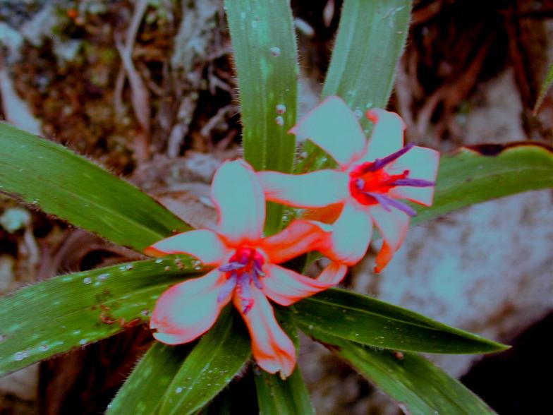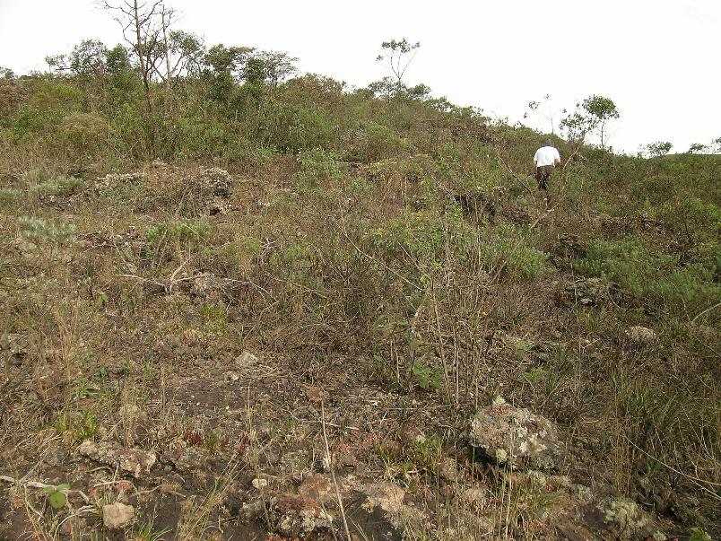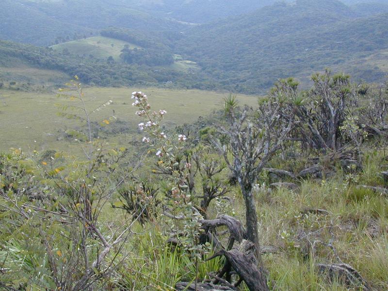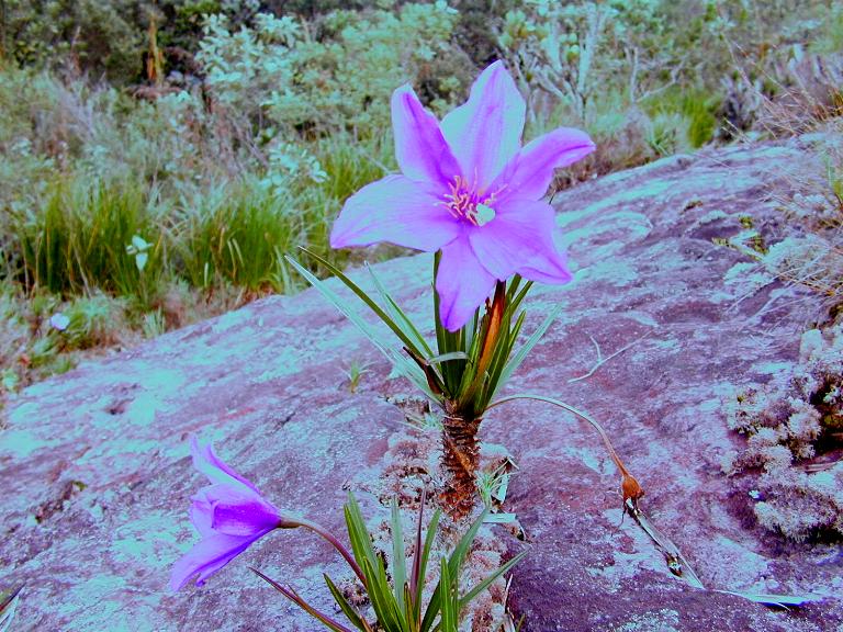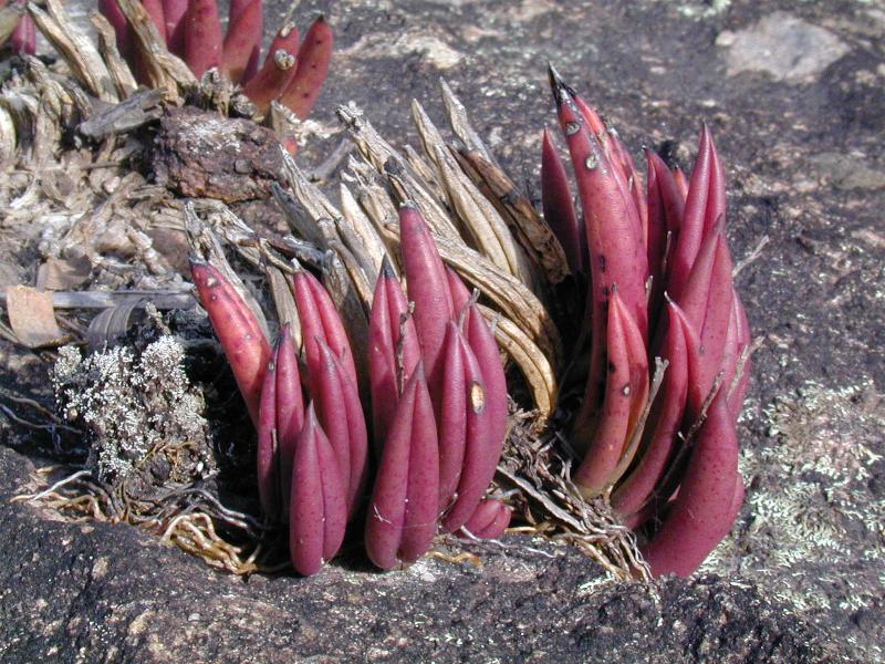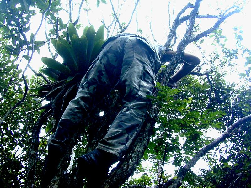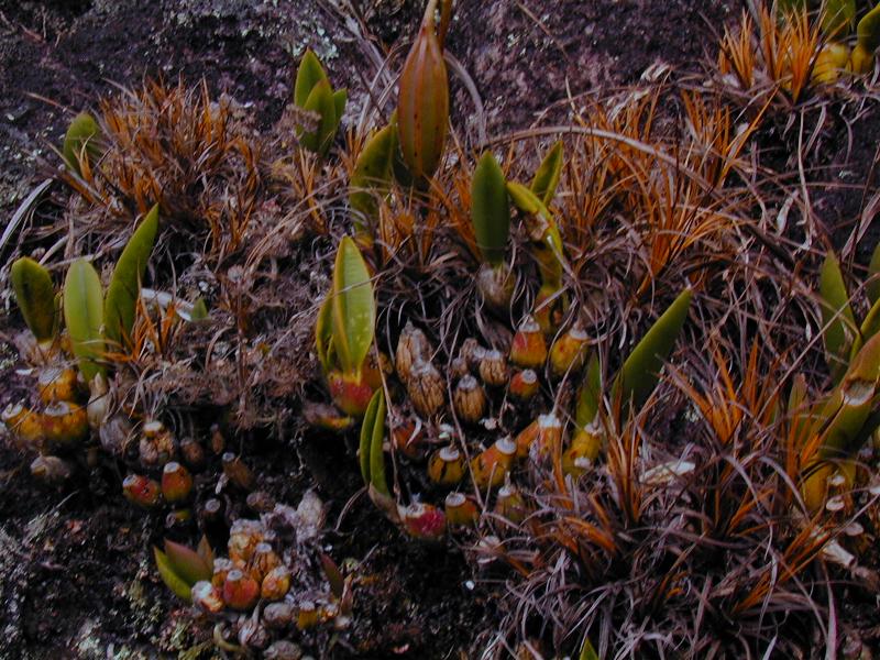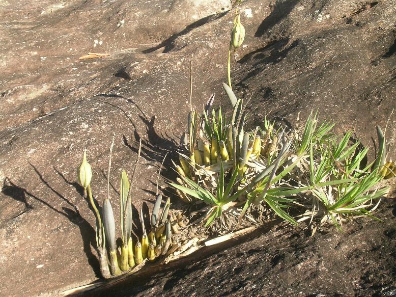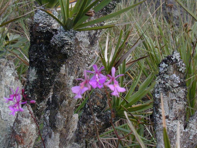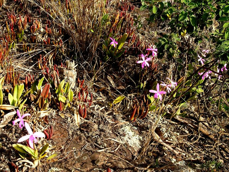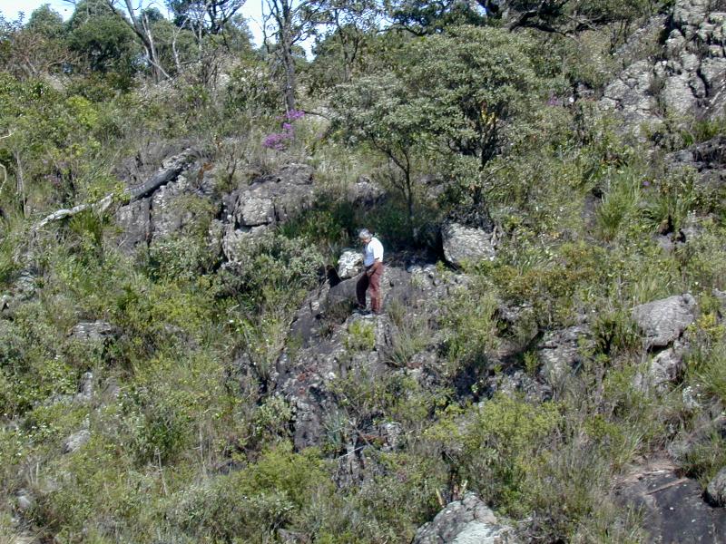 The dawn came and we both jumped up eager to assail the mopuntain or or muscles. On our way up we picked up our guide. To go to the top you needed to pay a local guide who hopefully could get us up to the top, but more importantly get us back to the bottom. He had a lot of knowledge about the local plants that were not orchids. Vellozia bushes are the norm in Minas Gerais and there are close to 20 different species. It is a soft wood tree and has a very rough bark and can be dwarfed such as this one or can attain a height of 12' and have a trunk 2' around and all of them flower each with a different shape and color. Our guide told us to rub the leaves of this particular Vellozia and then rub our exposed faces and hands. It had a wonderful smell and he said that now no bug would get within 10' of us. He was right. On a side note, very few mosquitos or other biting insects bothered me duriong my entire stay in Brazil. I don't know if it was just that it was fall and the bugs are light or there just aren't any. Either way it was nice not to have to scratch much after a day in the woods. I only found one tick on me during the whole stay as well.