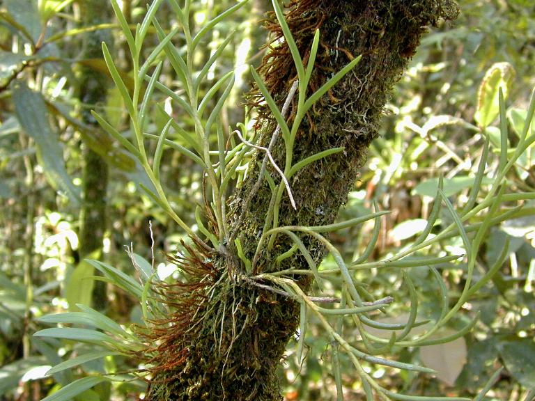 After making our way back up to the car and a dry shirt Marcos asked me. "Should we go down the other side now?" I like any orchid addict, said ,with chattering teeth, "sure why not". Here is an Encyclia euosma growing on a tree trunk on the windward side of the ridge, [we had been on the leeward side before where it is nice and warm]. After a bit of stumbling about we found this Maxillaria flower. This side was much steeper than the other side and I had to really think about not pitching over as I took this picture of Bifrenaria stefanae. Bulbophyllum are common in Brazil in deferance to the rest of South America. Here is a Bulbophyllum napellii. After this find I turned to Marcos and Said "I'm done" so we climbed back up to the car and headed down towards lower ground.