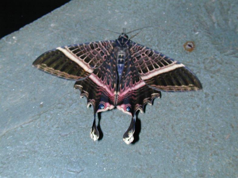 Dusk brought on another rainshower and as a last surprise for this wonderous day a rainbow. We drove in pitch dark roads for an hour and a half before we got down to a paved road and then made our way back to the coast and to Bertioga where our other Brazilian friends, Dalton and Americo, awaited us. As I wearily went to bed after hours of spirited talk with the guys I found this moth awaiting me on the floor upstairs.