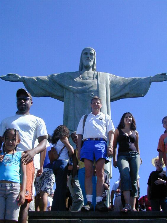 Here is Downtown Rio from above. We drove to see Christ the redeemer up close Yes that is me, the gringo in the blue shorts.