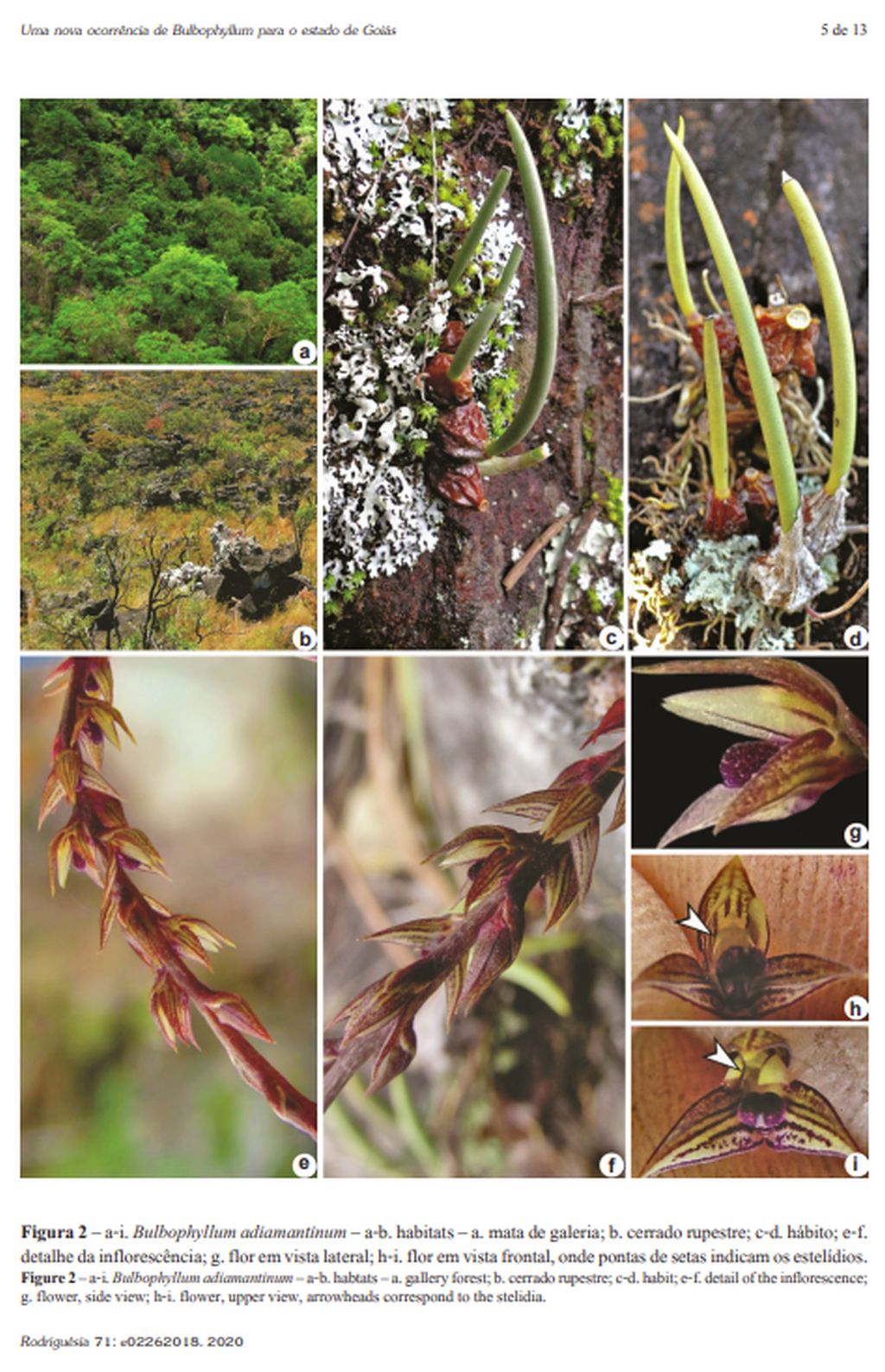 Photos by © Rodriguésia 71: e02262018. Santos IS, Alonso AA & Silva MJ 2020 A new occurrence of Bulbophyllum (Orchidaceae, Epidendroideae) for the state of Goiás, Brazil P> Drawing