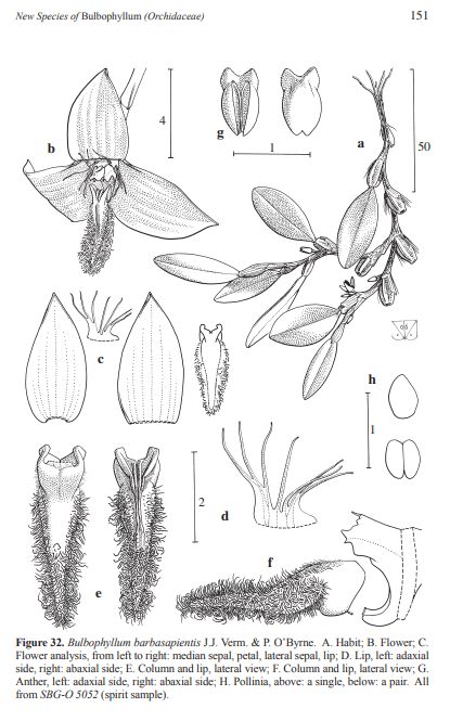 References W3 Tropicos, Kew Monocot list , IPNI ; * Gard. Bull. Singapore 60:150 fig 32 J.J.Verm. & P.O'Byrne 2008 drawing fide; Bulbophyllum of Sulawesi Vermeullen & O'Byrne 2011 drawing/photo fide