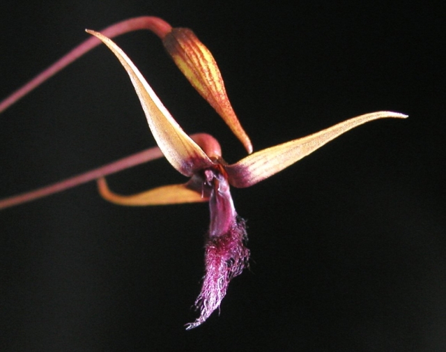 Common Name The Bushy Haired Bulbophyllum [The name refers to the bushy, tangled hairs on the lip.]