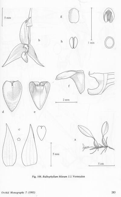 Bulbophyllum bliteum J.J.Verm. 1993 SECTION Peltopus Schlechter 1913