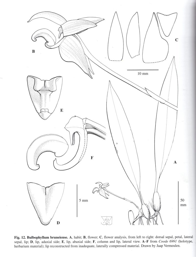 Bulbophyllum bruneiense J.J.Verm. & A.L.Lamb 2008 SECTION Beccariana Pfitz. 1889 TYPE Drawing by J J Vermeulen