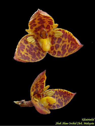 References W3 Tropicos, Kew Monocot list , IPNI ; Botanisk Tidsskrift Bild 70 Hft 1 Contributions to the flora of Thailand VI Seidenfaden 1975; The Orchids of Penninsular Malaysia & Singapore Woods & Seidenfadden 1992 drawing/photo fide; A Checklist of the Orchids of Borneo Wood & Cribb 1994; Orchids of Sumatra Comber 2001 photo fide; Wild Orchids of the Cameron Highlands REACH 2009 photo fide; Wild Orchids of Penninsular Malaysia Ong, O'Byrne, Yong & Saw 2011 photo fide