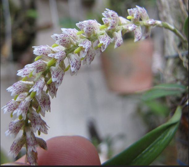 Similar to B micranthum but differs in the flat leaf, the 64 to 80 flowered inflorescence and the glabrous lip.