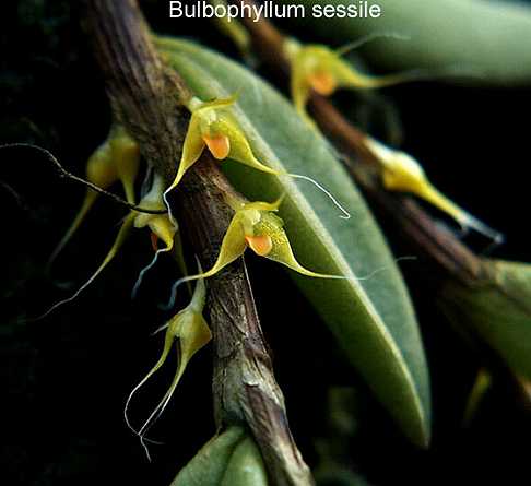References W3 Tropicos, Kew Monocot list , IPNI ; Bonplandia Rchb.f 1857; The Orchids of Burma Grant 1895/95; Die Orchideen Von Java J.J.Sm. 1905 as B sessile; Die Orchideen Von Java Figuren Atlas J.J.Smith 1908 as B sessiledrawing fide; Orchidaceae of German New Guinea Schlechter 1913/85 as B sessile; Orchidaceae of German New Guinea Schlechter 1914/85 as B sparsifolium drawing good; Flora of Malaya Vol 1 Holttum 1957 as B sessile; Orchidaceae of German New Guinea Schlechter 1914/85 as B teysmanii; The Orchids of Thailand Seidenfaden & Smitinand 1959 photo; The Orchids of Papua New Guinea An Introduction Millar 1978 as B sessile photo fide; Dansk Botanisk Arkiv Bind 33 #3 Orchid Genera in Thailand VIII Bulbophyllum Thou Seidenfaden 1979 as B sessile drawing fide; The Complete Writings on Philippine Orchids Vol 1 Quisumbing 1981 as b profusum; Orchidiana Philippiana Vol 1 Valmayor 1984 as B profusum; Orchids of Malaysia Teo 1985; Orchid Genera in Thailand Seidenfaden 1990; Orchids of Java Comber 1990 as B sessile; Orchids of Penninsular Malaysia and Singapore Seidenfaden & Wood 1992 drawing fide as B sessile; Ferns and Orchids of the Mariana Islands Raulerson & Rinehart 1992 as B profusum photo fide; The Plants of Mount Kinabalu Vol 2 Orchids Wood Beaman & Beaman 1993 as B sessile; A Checklist of the Orchids of Borneo Wood & Cribb 1994 as B sessile; Orchids of Papua and New Guinea Millar 1999; Bulbophyllums and their Allies Seigerist 2001 as B sterile; Orchids of Sarawak Beeman & Wood Beaman etal 2001; A Field Guide to the Wild Orchids of Thailand Vaddhanaphuti 2001 photo fide as B sessile; Orchids of Sumatra Comber 2001 photo fide as B sessile; Lindleyana Vol 17 No 1 2002; Flora Malesiana Orchids of the Philippines Vol I Agoo, Shuiteman and de Vogel 2003; A field Guide to the Wild Orchids of Thailand Vaddhanaphuti 2005 as B sessile photo ok; Turczaninowia 19 (3): 5–58 L. V. Averyanov1 , Khang Sinh Nguyen etal 2016 ; Orchids of India A Glimpse Misra 2007; The Orchids of Mount Kinabalu Vol 2 Wood, Beaman, Lamb, Chu Lun and Beaman 2011 drawing fide; Wild Orchids of Penninsular Malaysia Ong, O'Byrne, Yong & Saw 2011 photo fide; Bulbophyllum of Sulawesi Verm & O'Byrne 2011 drawing/photo fide; Philippine Native Orchid Species Cootes 2011 photo fide; Bulbophyllum of Borneo J J Verm, P O'Byrne and Lamb 2015 photos/drawing fide;