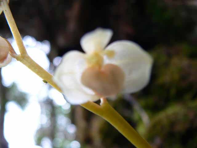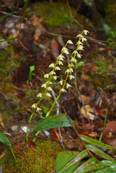 There are 2 distinct forms of this species with the normal being a medium sized plant, but in lower elevations in exposed situations, the small form has leaves about .8" [2 cm] long, has 1 to 3 flowered inflorescence, and often smaller flowers with thicker flower parts. Also in some samples the tooth just below the stigma is missing, but there is a slight, well rounded swelling lower down on the column foot.
